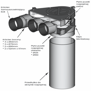 Klips montażowy to niezbędny element, który umożliwia solidne przymocowanie skrzynki rozprężnej i rozdzielacza do podłoża. Dzięki swojej konstrukcji, klips ten nie tylko zapewnia stabilność, ale także umożliwia precyzyjną regulację elementów na nierównościach, co jest kluczowe dla prawidłowego funkcjonowania całego systemu.